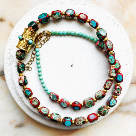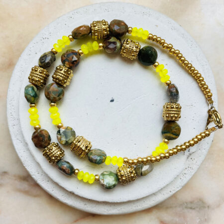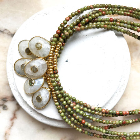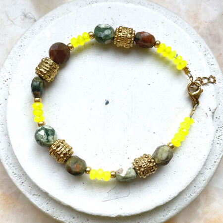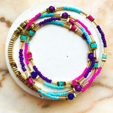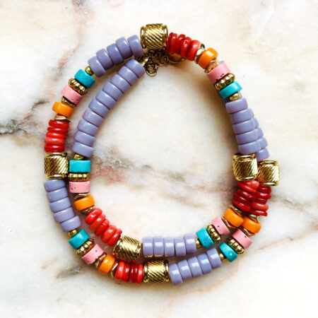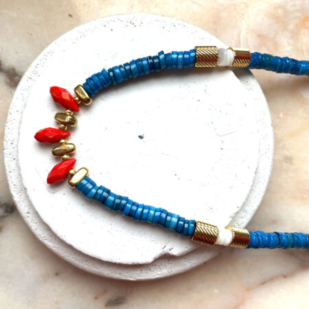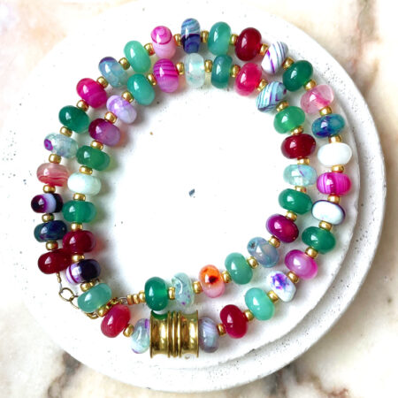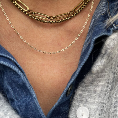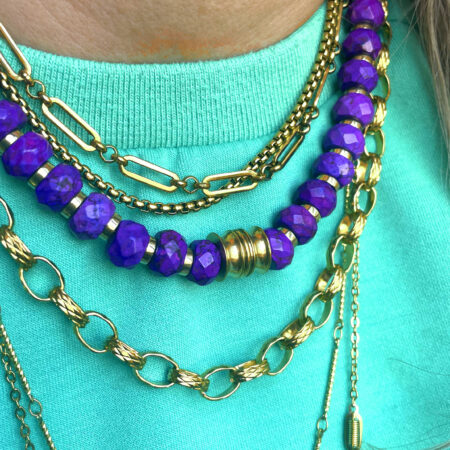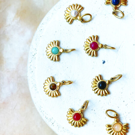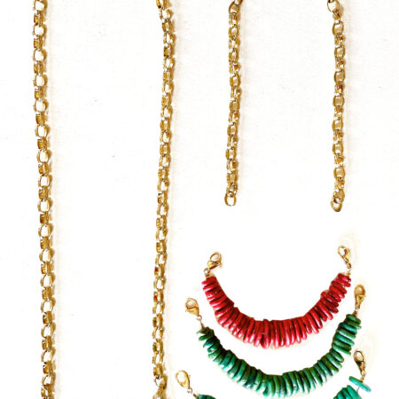 Nous travaillons essentiellement avec du vermeil, de l’argent, des pierres, du verre, du cristal et du laiton.