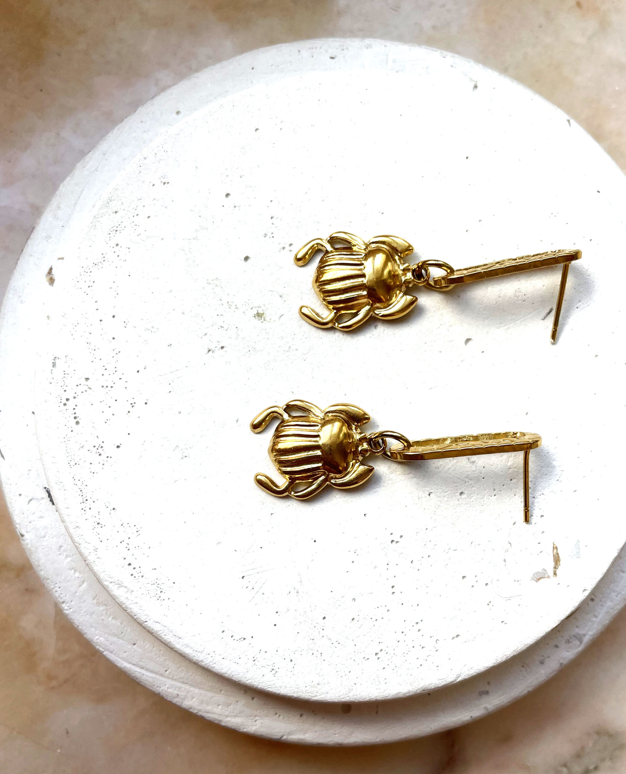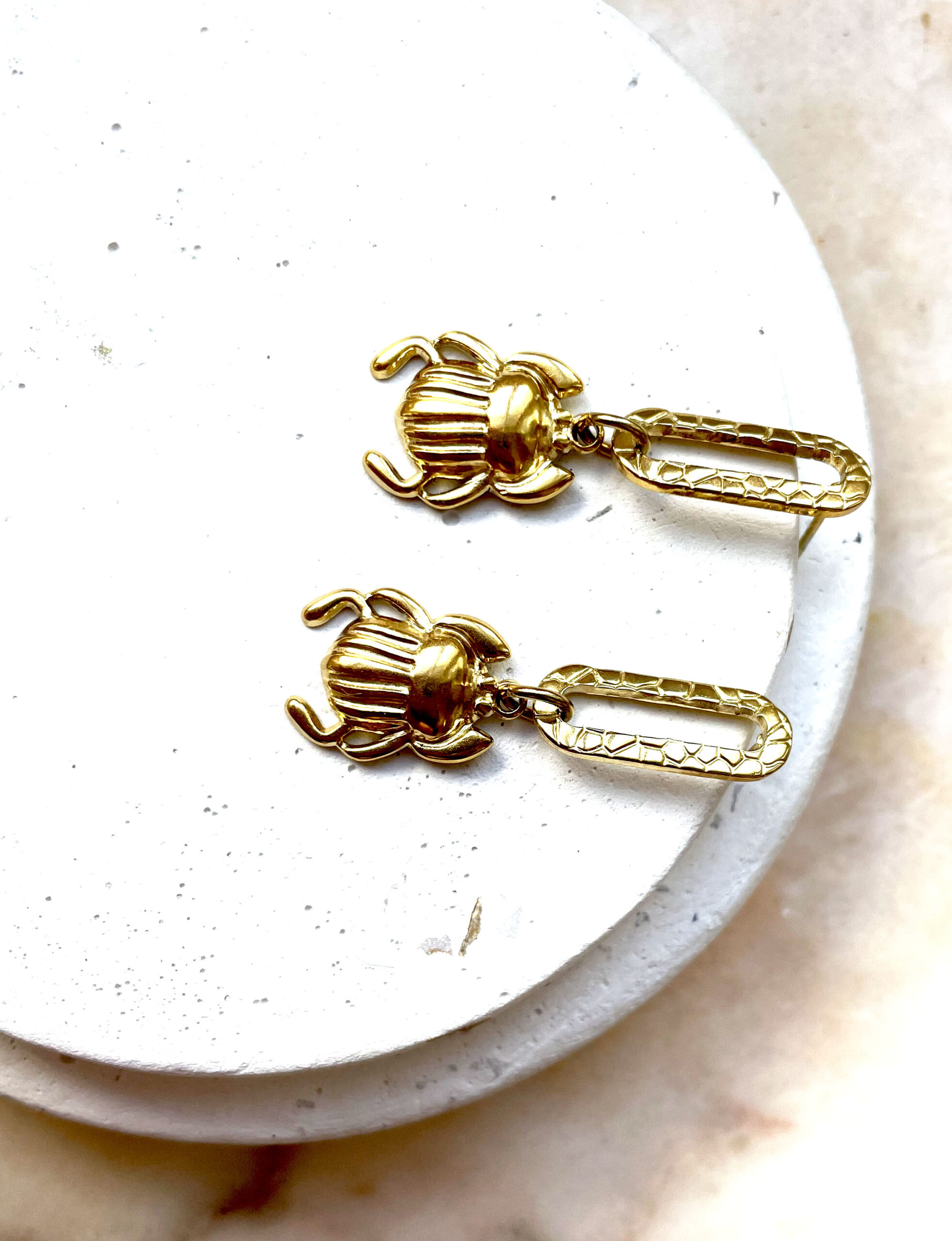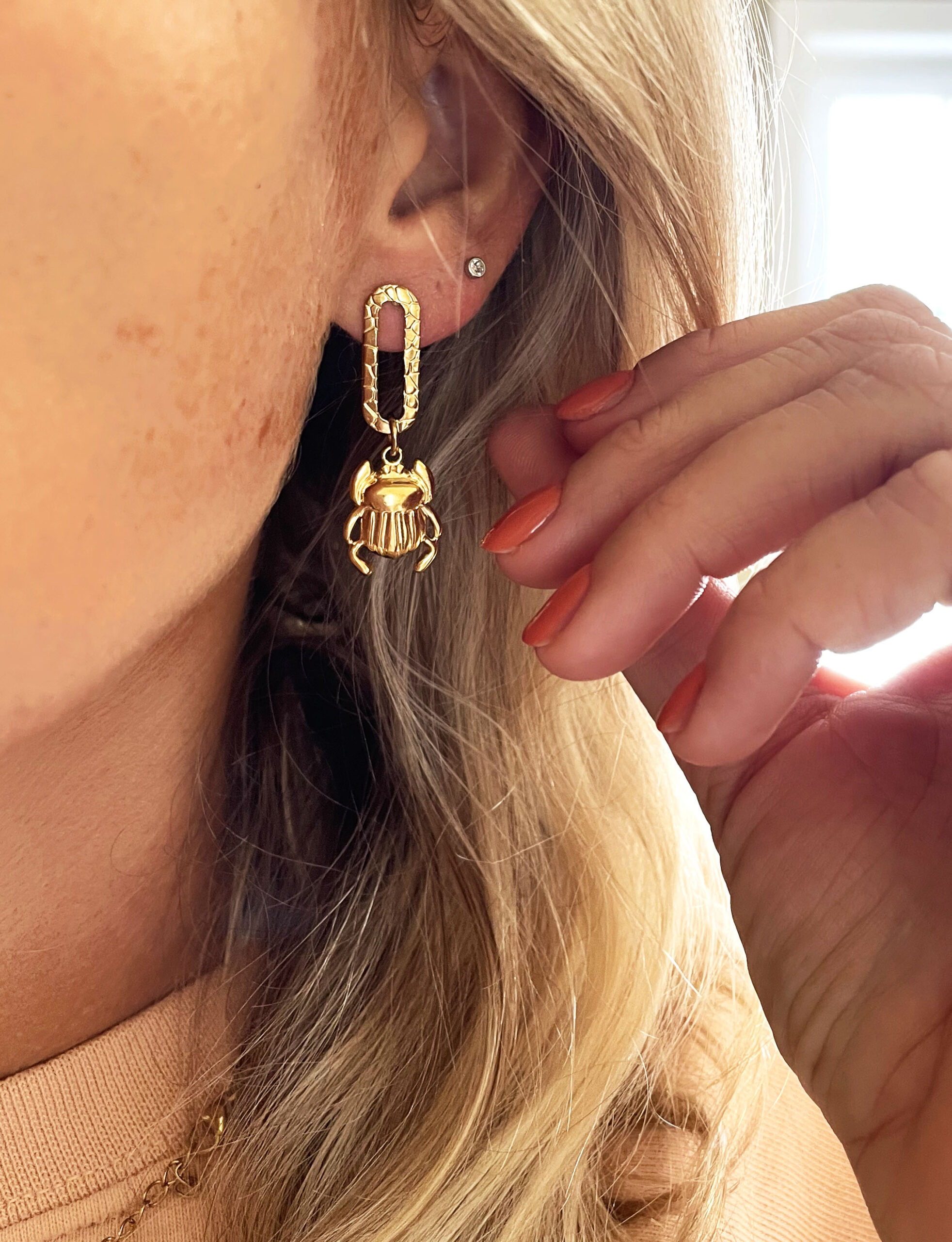 Cette paire de boucles d’oreille a été montée dans notre atelier situé en Belgique. Elle se compose d’éléments en acier inoxydable. Coloris: gold. Longueur: 4cm.
