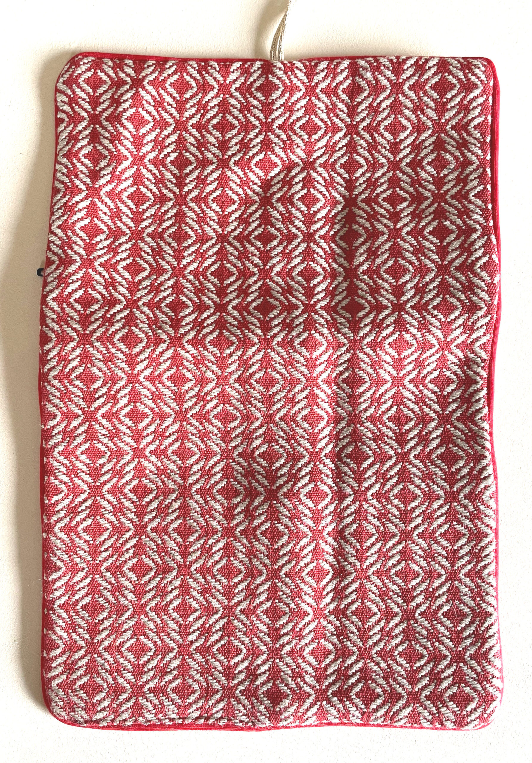 Cette pochette a été pensée et imaginée dans l’atelier Chouhuihui et réalisée dans un atelier protégé situé en Belgique. Les tissus ont été sélectionnés avec beaucoup de soin dans un magasin de tissus d’ameublement en Belgique ou le choix s’est porté sur des restants de chutes afin d’éviter le gaspillage. Le boudin avec pression permet de ranger bague et/ou créoles, les 4 rubans les colliers qui se glissent ensuite dans la poche, le compartiment a tirette sert à y placer les barrettes, les joncs, les bijoux plus imposants et la dentelle est à utiliser pour les boucles d’oreille. Taille de la pochette ouverte: 31cm x 21cm, Taille de la pochette fermée: 21cm x 11cm. Matières: Coton, polyester,… Coloris: rouge, rouge rosé, blanc, beige,..