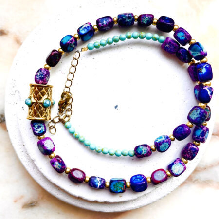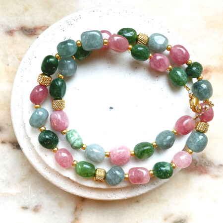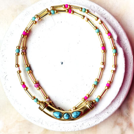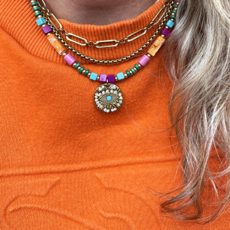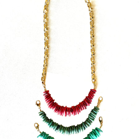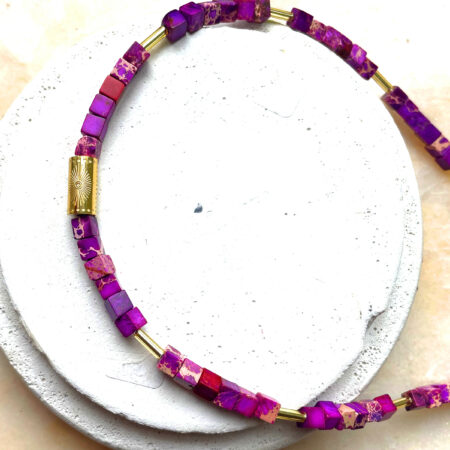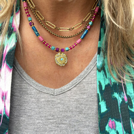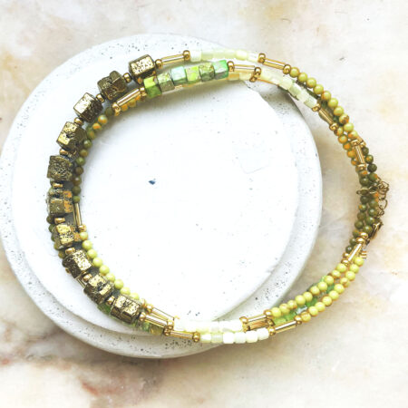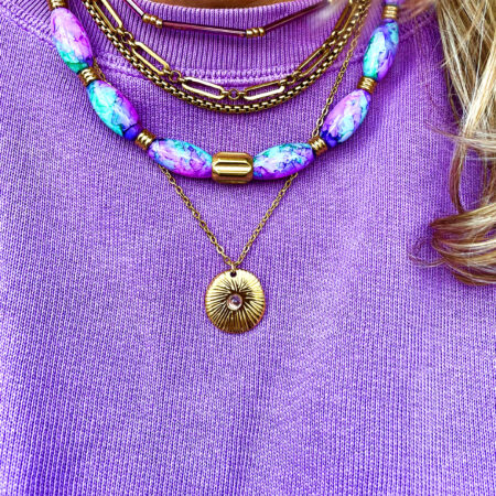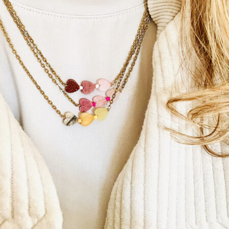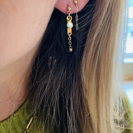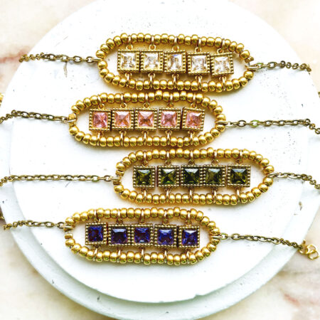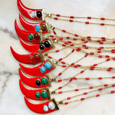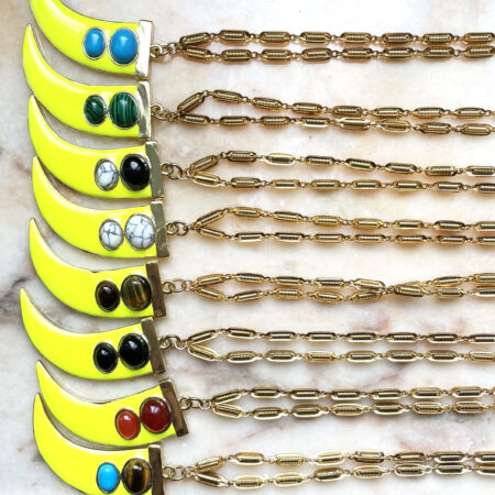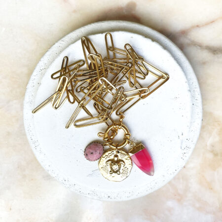 Nous travaillons essentiellement avec du vermeil, de l’argent, des pierres, du verre, du cristal et du laiton.
