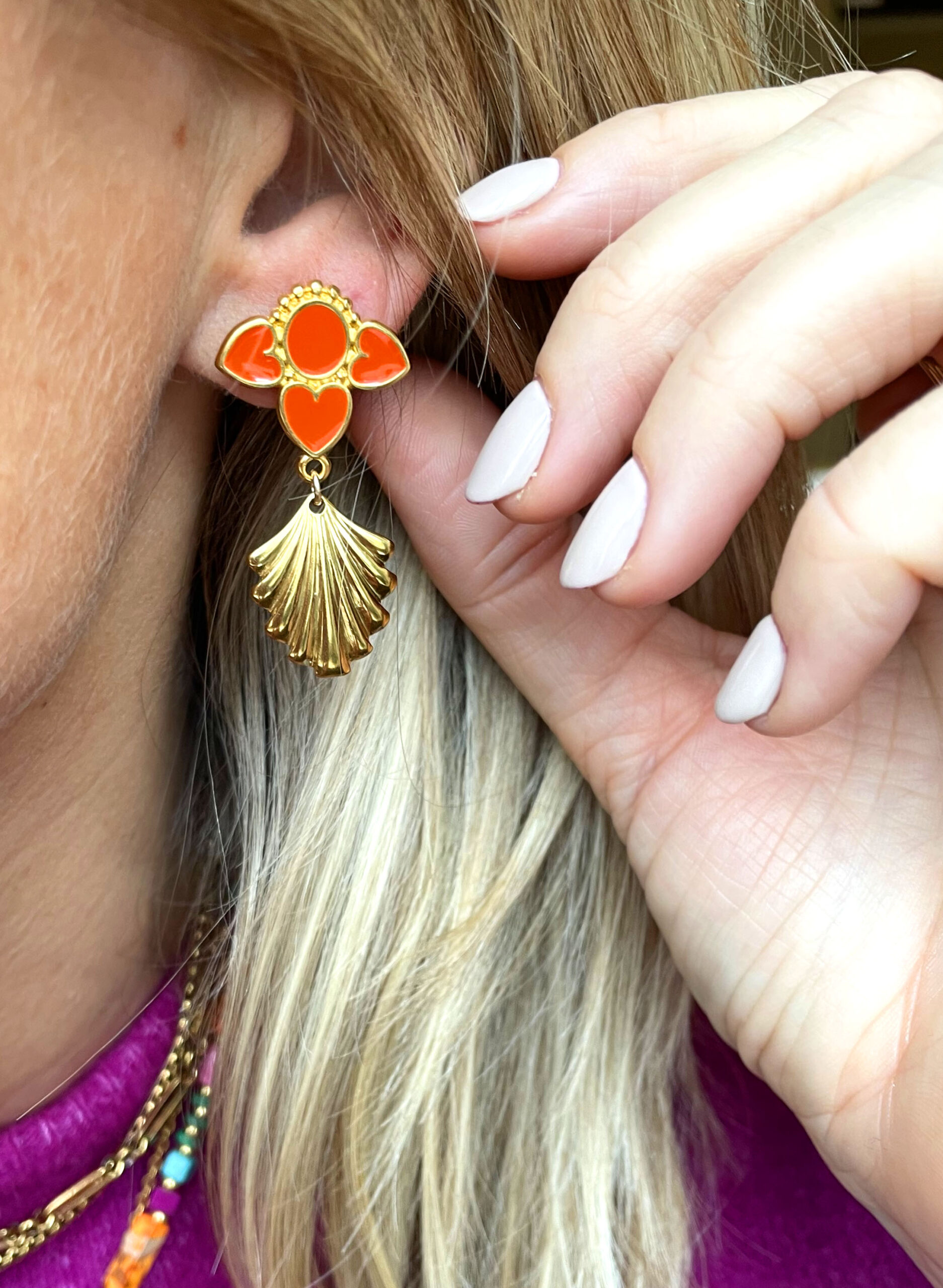 Cette paire de boucles d’oreille a été réalisée à la main et en série limitée dans notre atelier situé en Belgique. Elle se compose d’acier inoxydable et d’émail. Longueur: 4cm Coloris: rose magenta et gold.