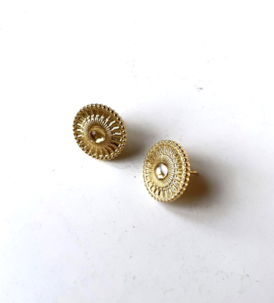 Cette paire de boucles d’oreille a été réalisée à la main en série limitée dans notre atelier situé en Belgique. Elle se compose d’une base en acier inoxydable et de cabochons en cristal de roche ( aux nombreuses vertus). Diamètre: 16mm.