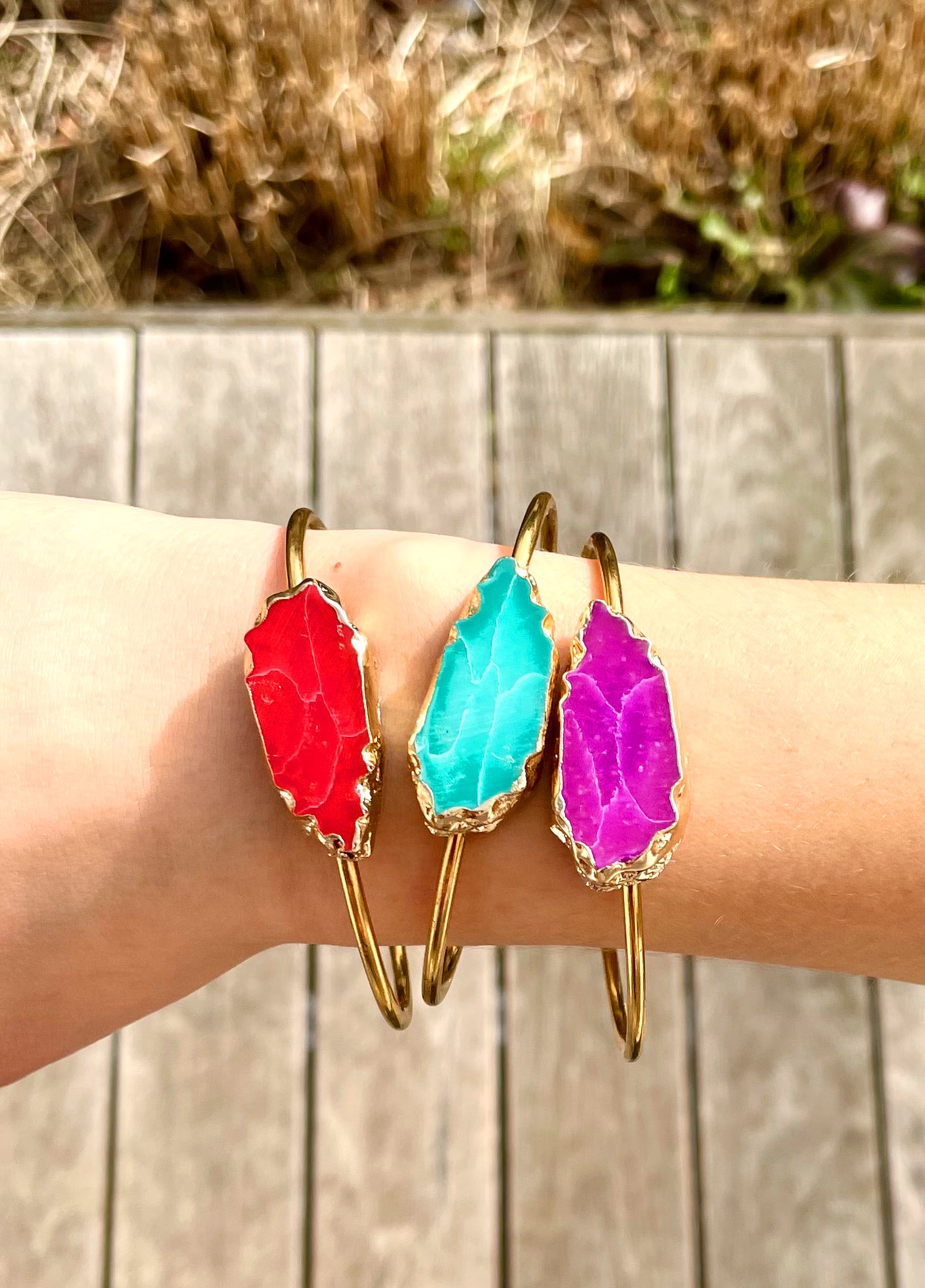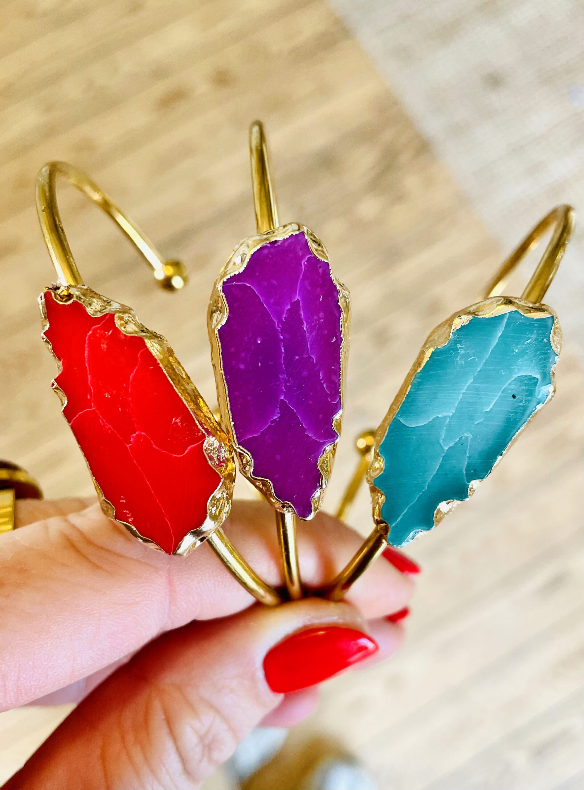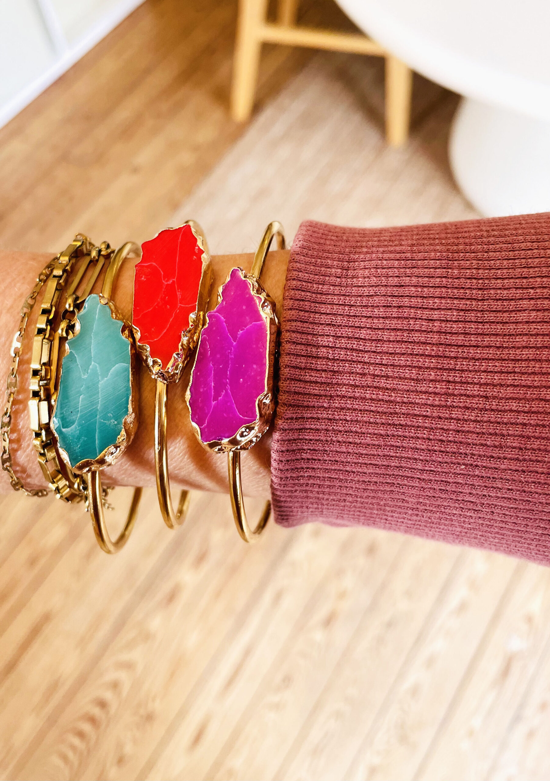 Ce jonc a été réalisé à la main et en série limitée dans notre atelier situé en Belgique. Il se compose d’une base en acier inoxydable et d’un pièce centrale en reconstitution de pierre entourée d’aluminium. Diamètre: 6,5cm > 6cm Coloris: rouge orangé  et gold. Pour évitez un changement de couleurs, évitez le contact avec l’eau, l’humidité, etc.